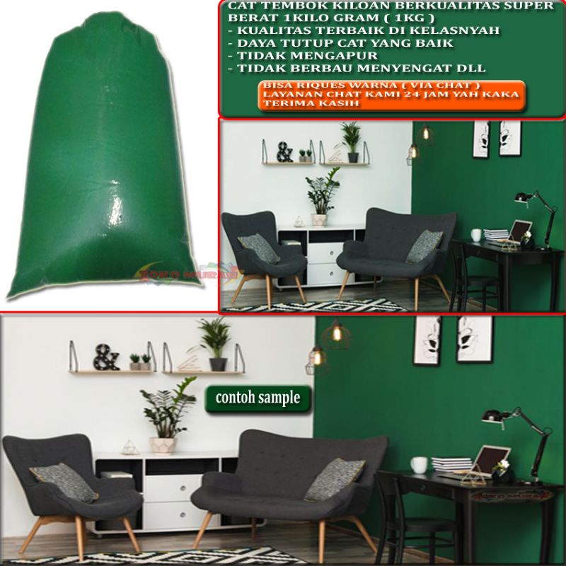 Cat tembok kiloan berkualitas super 1kg warna hijau botol hijau lumut hijau .